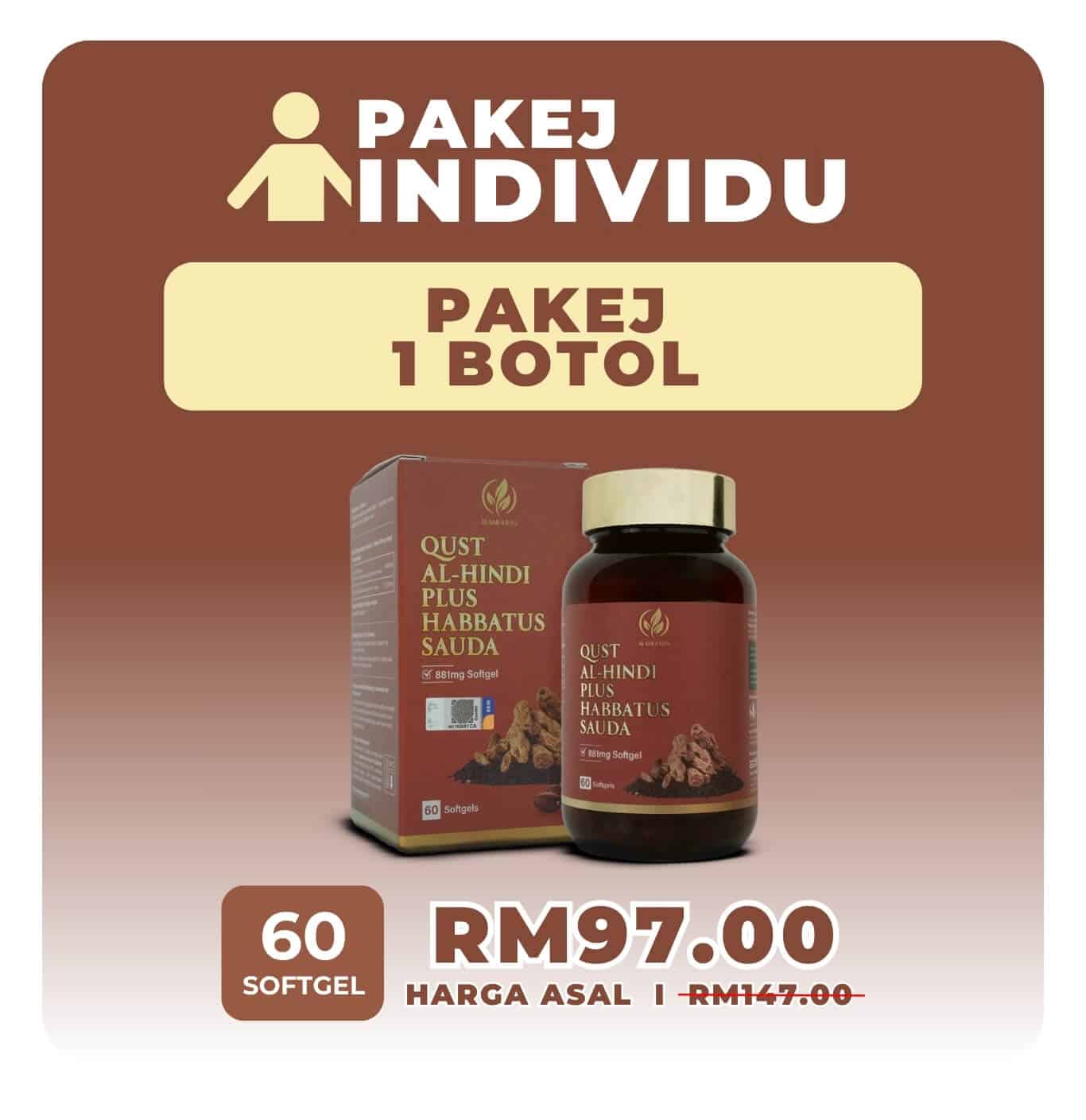 Setiap botol Qust Al Hindi mengandungi 60 biji.