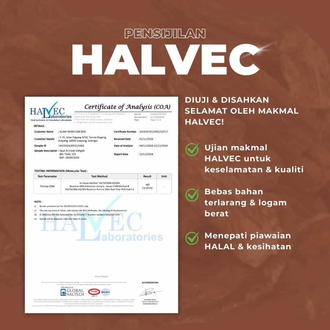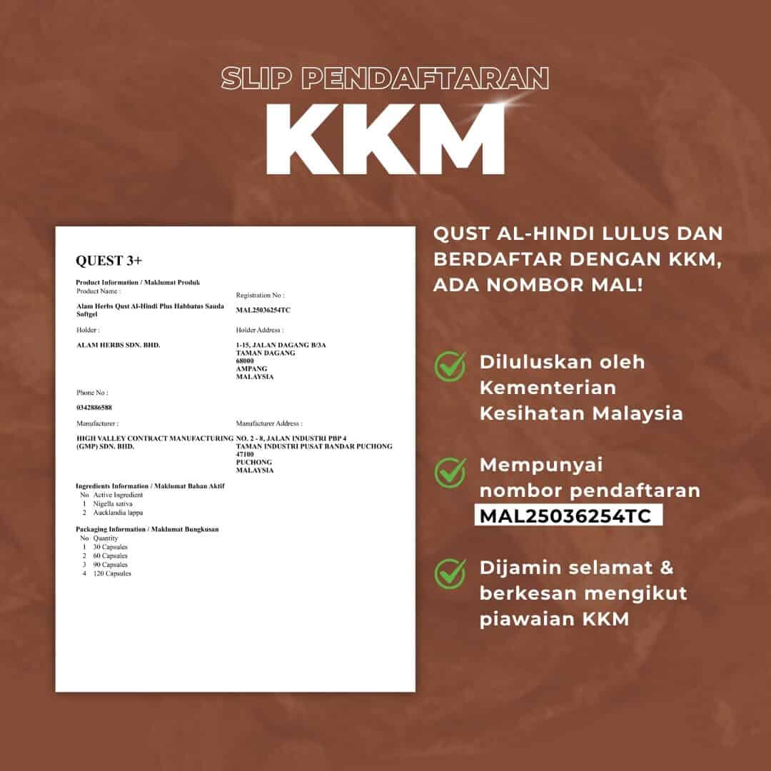 Kami pun rasa TAK LAYAK untuk terima BAYARAN jika Qust Al-Hindi ini langsung TAK MEMBANTU anda menghilangkan masalah asma, resdung, lelah dan batuk serta sesak nafas anda.