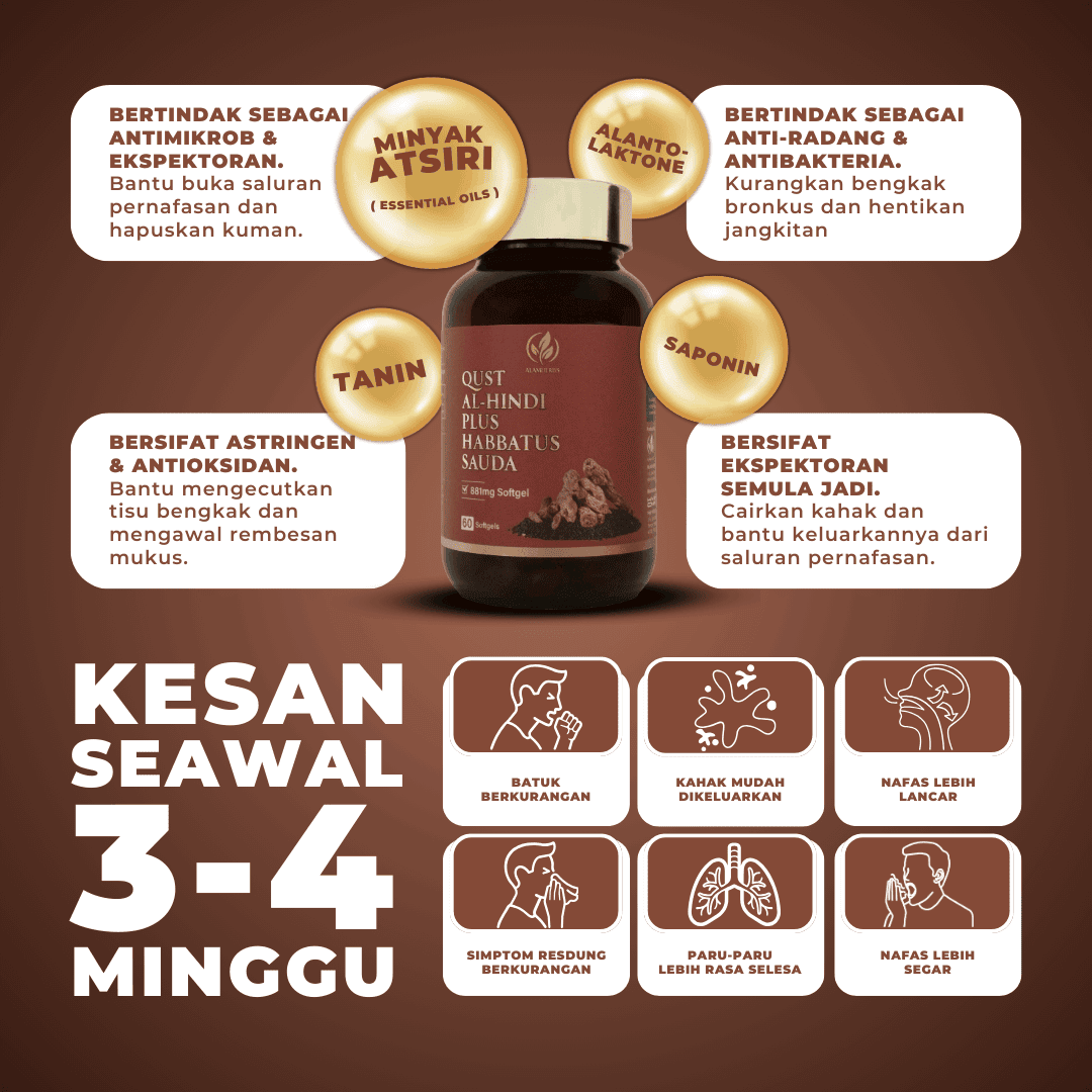 Selain Masalah Asma dan Lelah, Qust Al-Hindi juga amat bermanfaat untuk masalah pernafasan yang lain seperti resdung, batuk berpanjangan, berkahak dan simptom covid-19