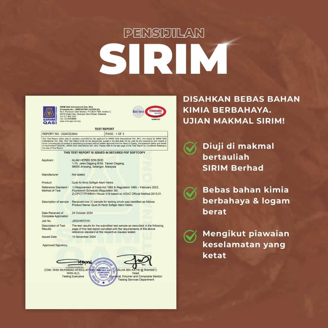 Jangan risau! Kami mempunyai sijil KKM, SIRIM dan Lab Test
